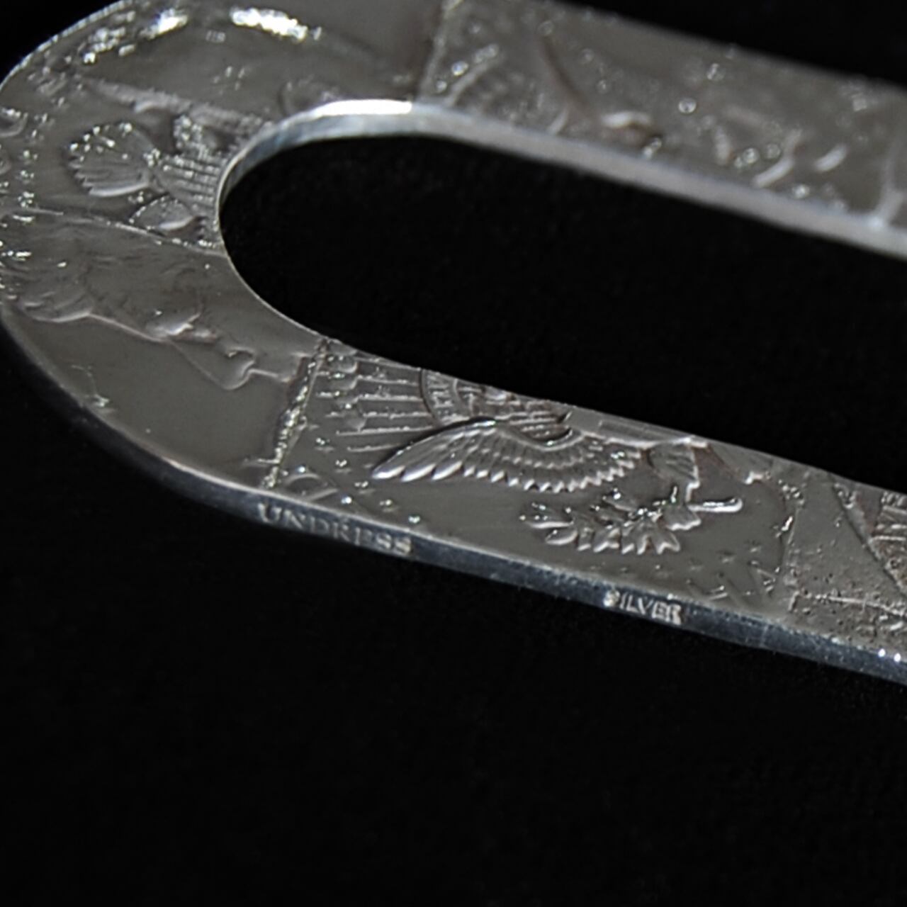 半世紀以上前のビンテージ シルバーコインを様々な工具を使い、切ったり、叩いたり・・・と職人の高度な技術と手間ひまをかけて一点ずつハンドメイドで作られたUNDRESSのリメイクジュエリー。